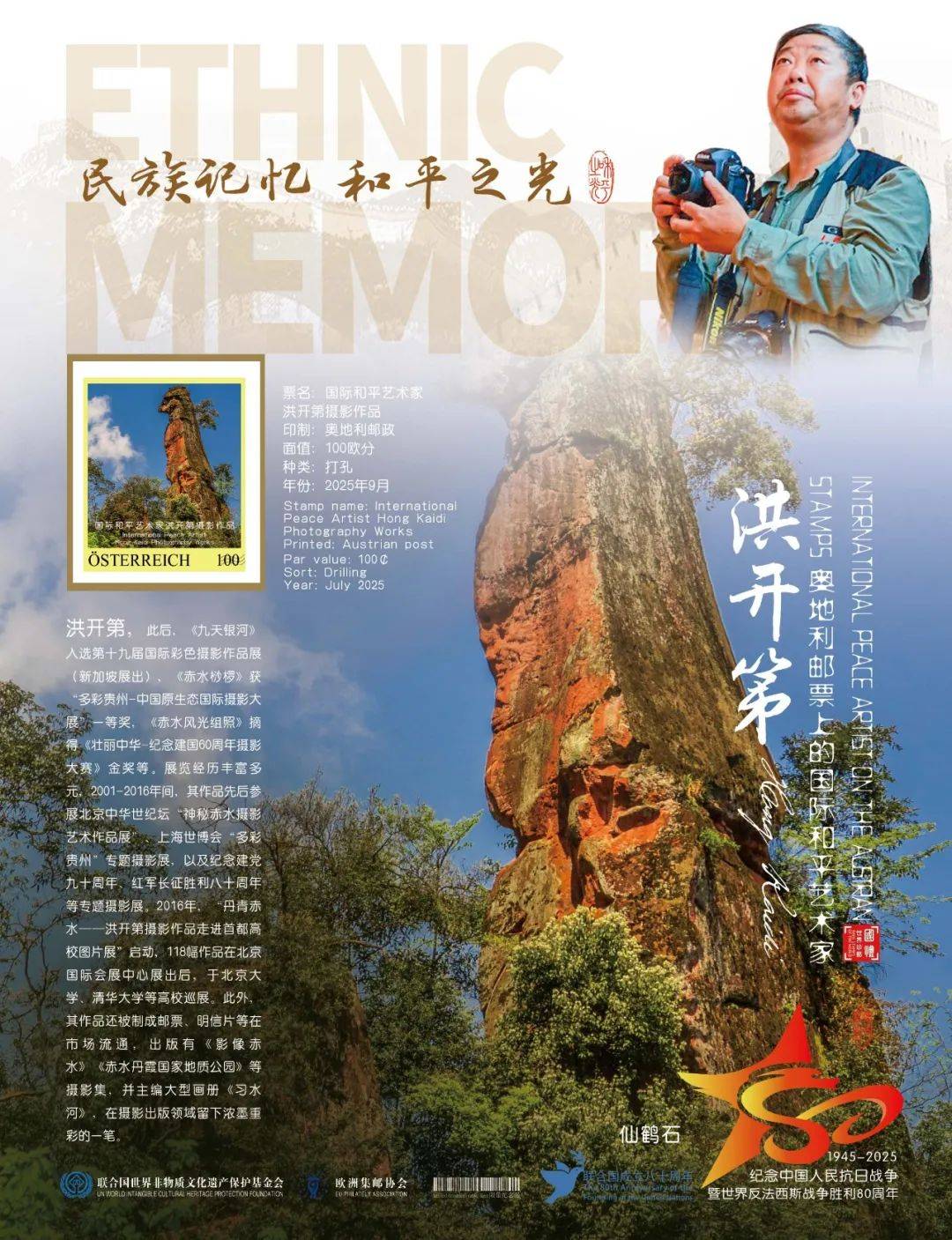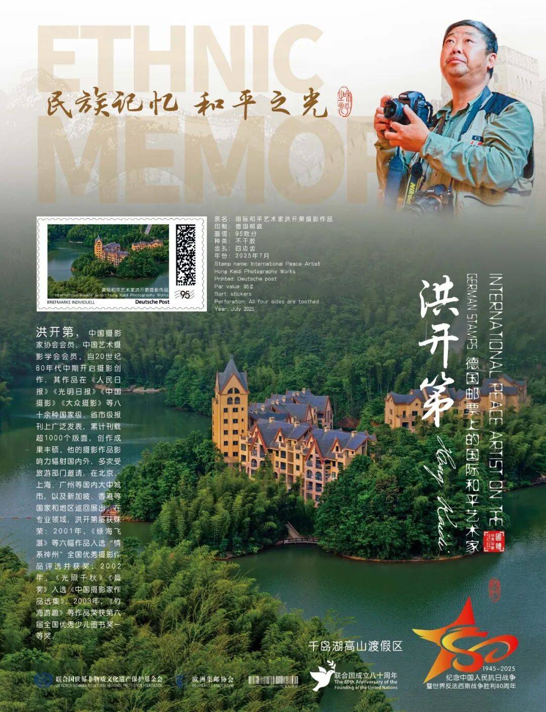 同时,联合国邮政、德国邮政、奥地利邮政、荷兰邮政为中国摄影名家洪开第在全球公开发行一套以纪念中国人民抗日战争暨世界反法西斯战争胜利80周年“民族记忆 和平之光——国际和平艺术家”为主题的邮票与珍藏册。以邮为媒,方寸之间让世界各地的人们感受到爱与和平的力量,并为世界和平发展注入新能量。