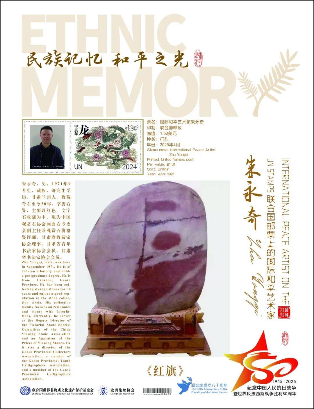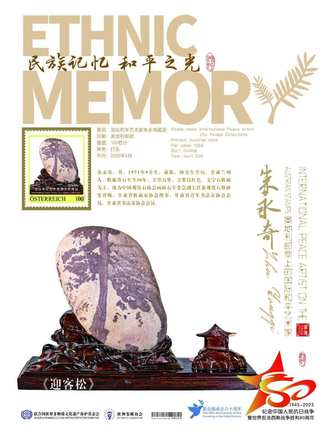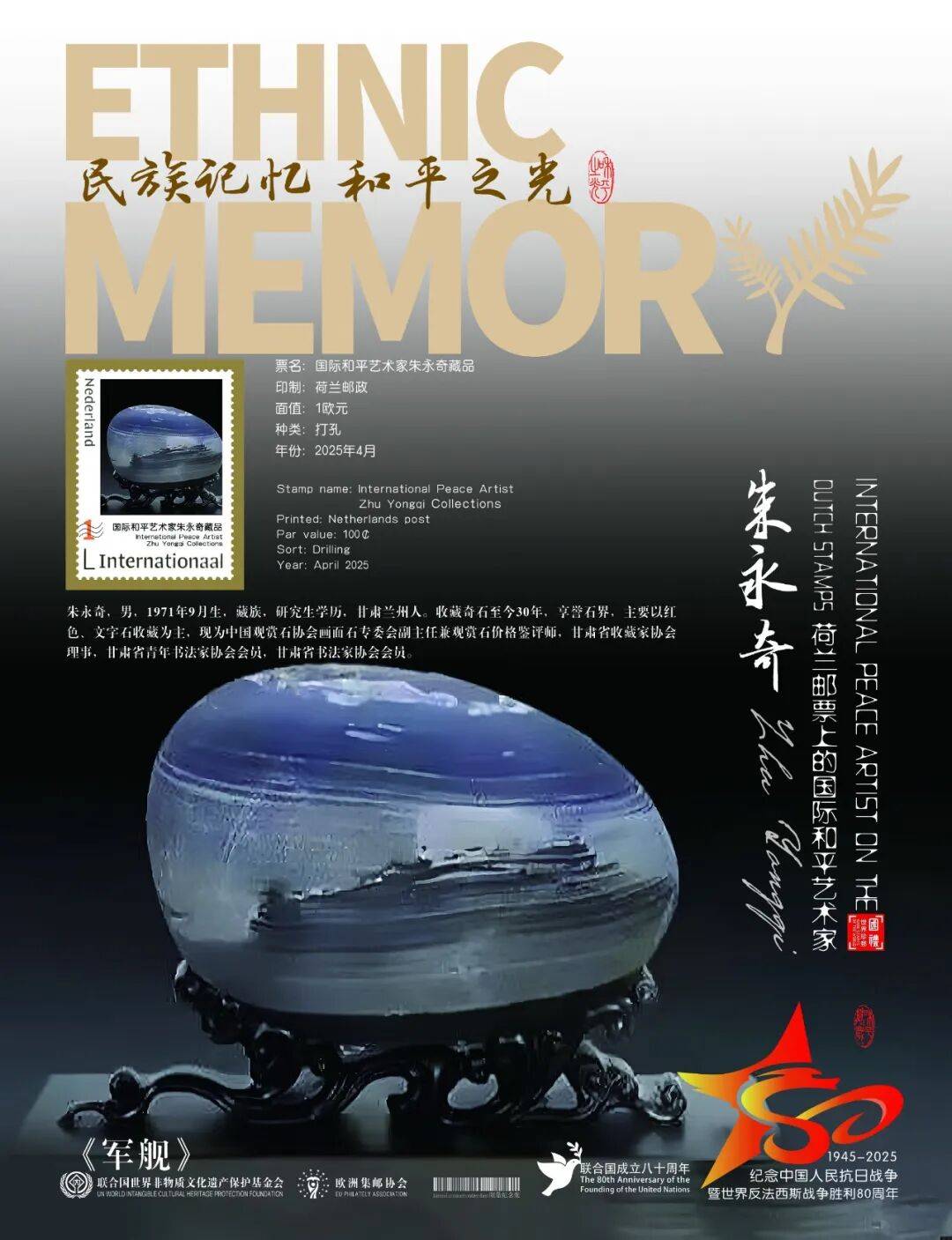 同时,联合国邮政、德国邮政、奥地利邮政、荷兰邮政为中国收藏名家朱永奇在全球公开发行一套以纪念中国人民抗日战争暨世界反法西斯战争胜利80周年“民族记忆 和平之光——国际和平艺术家”为主题的邮票与珍藏册。以邮为媒,方寸之间让世界各地的人们感受到爱与和平的力量,并为世界和平发展注入新能量。