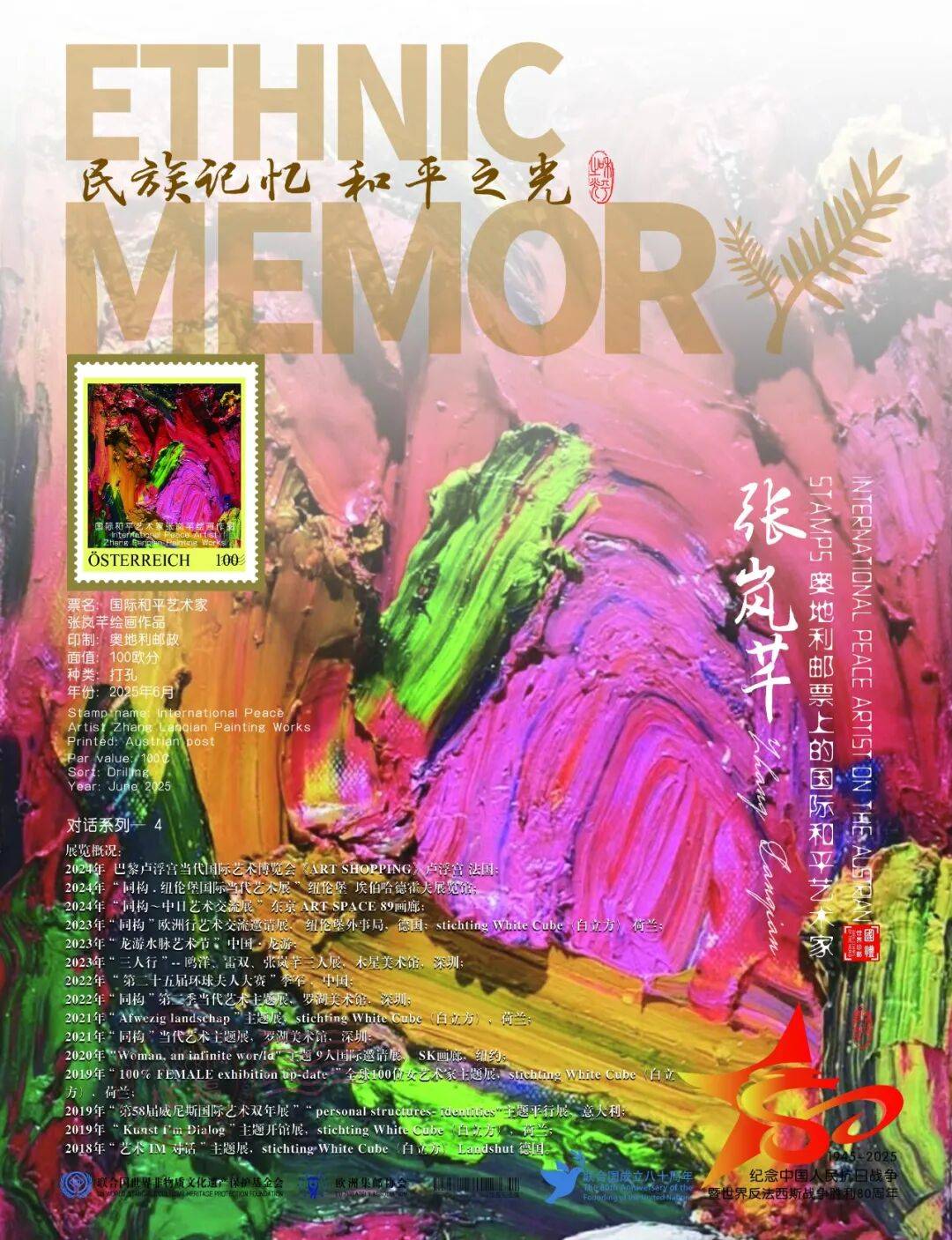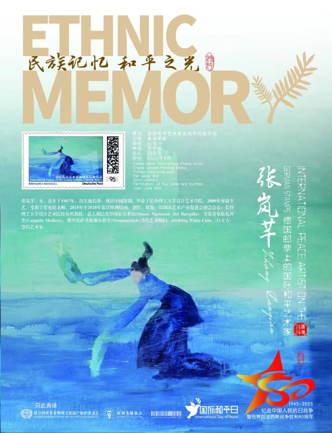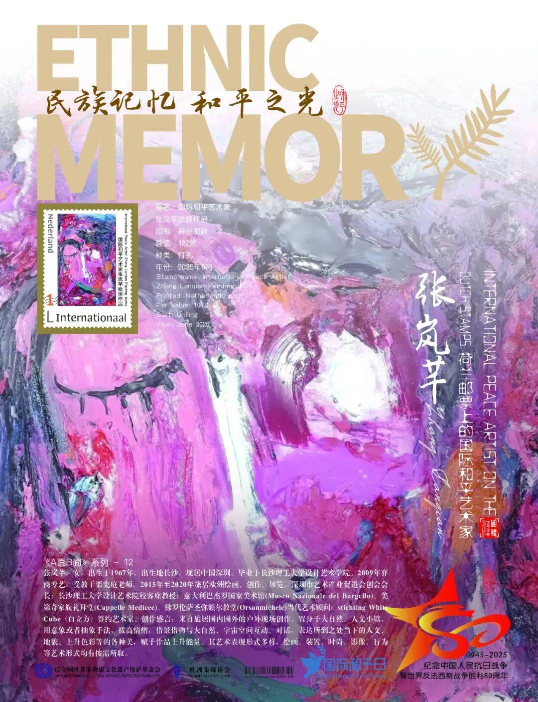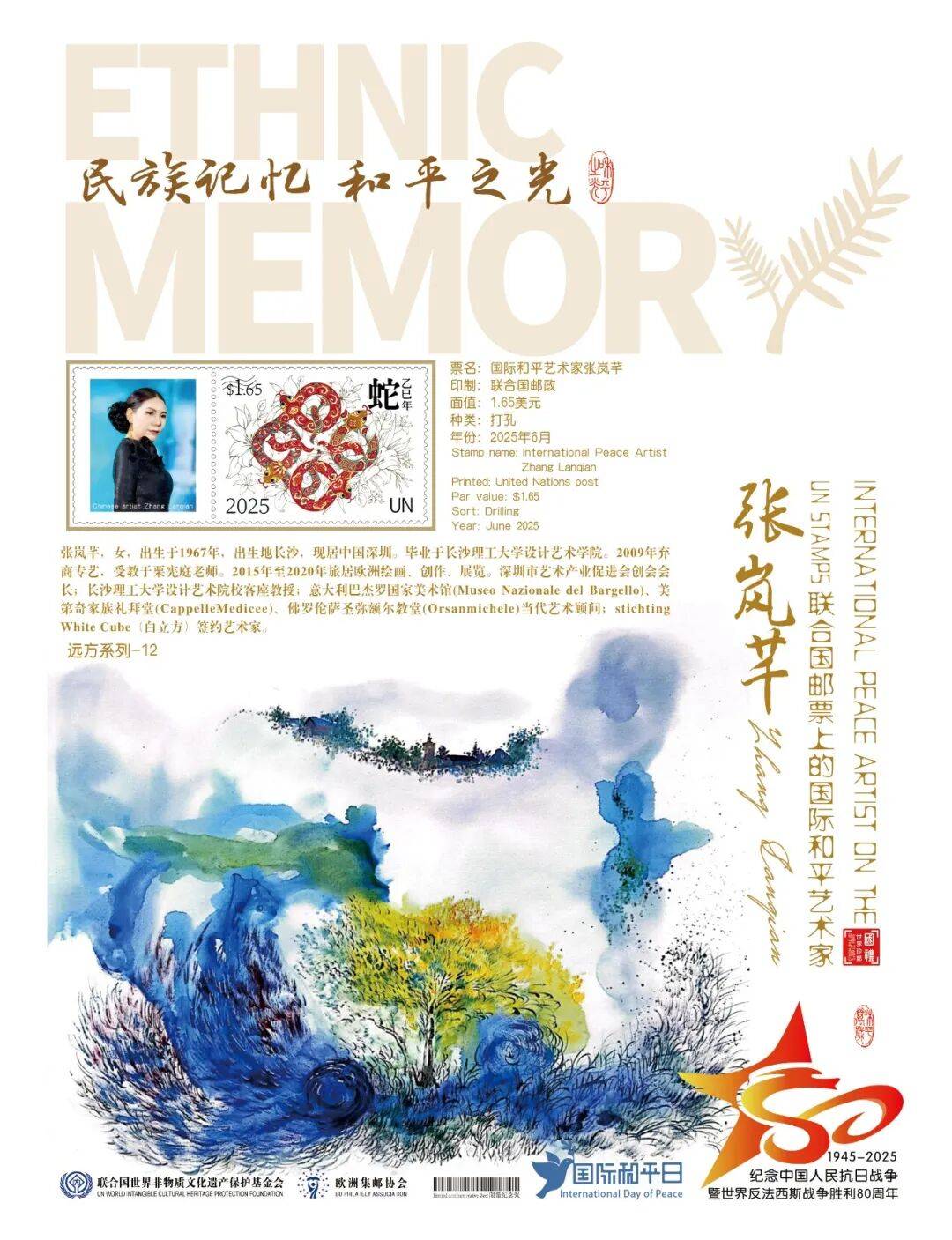 同时,联合国邮政、德国邮政、奥地利邮政、荷兰邮政为中国艺术家张岚芊在全球公开发行一套以纪念中国人民抗日战争暨世界反法西斯战争胜利80周年“民族记忆 和平之光——国际和平艺术家”为主题的邮票与珍藏册。以邮为媒,方寸之间让世界各地的人们感受到爱与和平的力量,并为世界和平发展注入新能量。