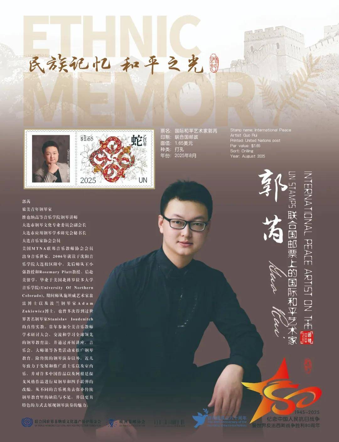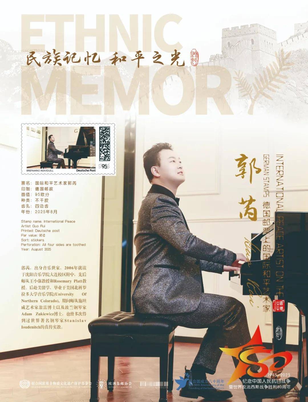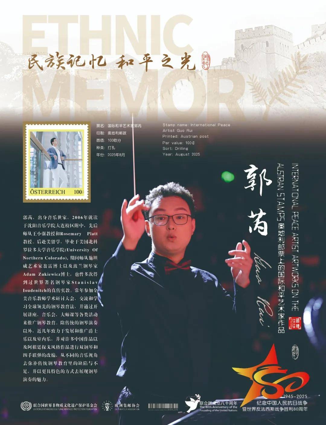 同时,联合国邮政、德国邮政、奥地利邮政、荷兰邮政为中国演奏名家郭芮在全球公开发行一套以纪念中国人民抗日战争暨世界反法西斯战争胜利80周年“民族记忆 和平之光——国际和平艺术家”为主题的邮票与珍藏册。以邮为媒,方寸之间让世界各地的人们感受到爱与和平的力量,并为世界和平发展注入新能量。