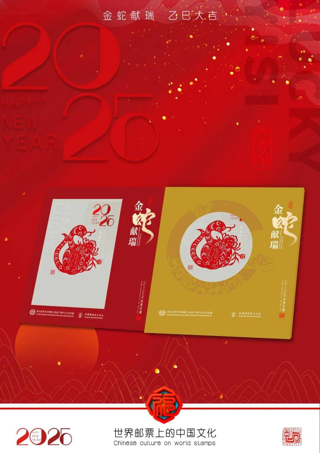 2025年,是中国农历生肖蛇年。山水丹青国际艺术中心、欧洲集邮协会、中国国际文化艺术交流发展中心联合日本邮政,共同推出了“金蛇献瑞 乙巳大吉——中国名人名家新年主题邮册”活动。