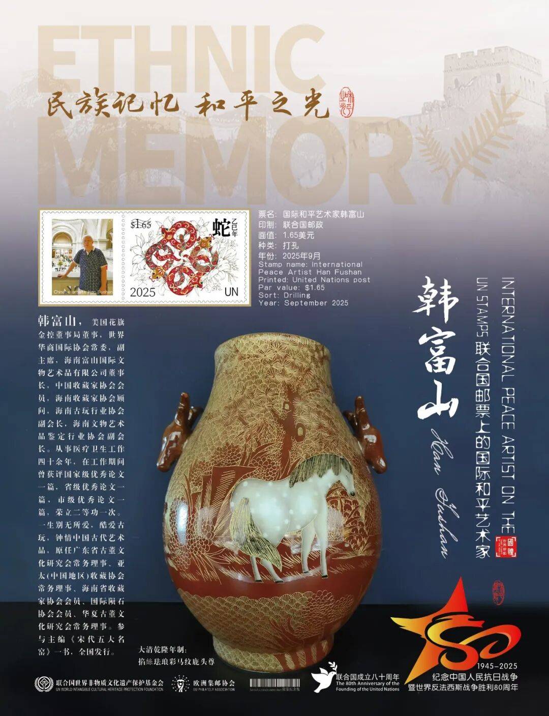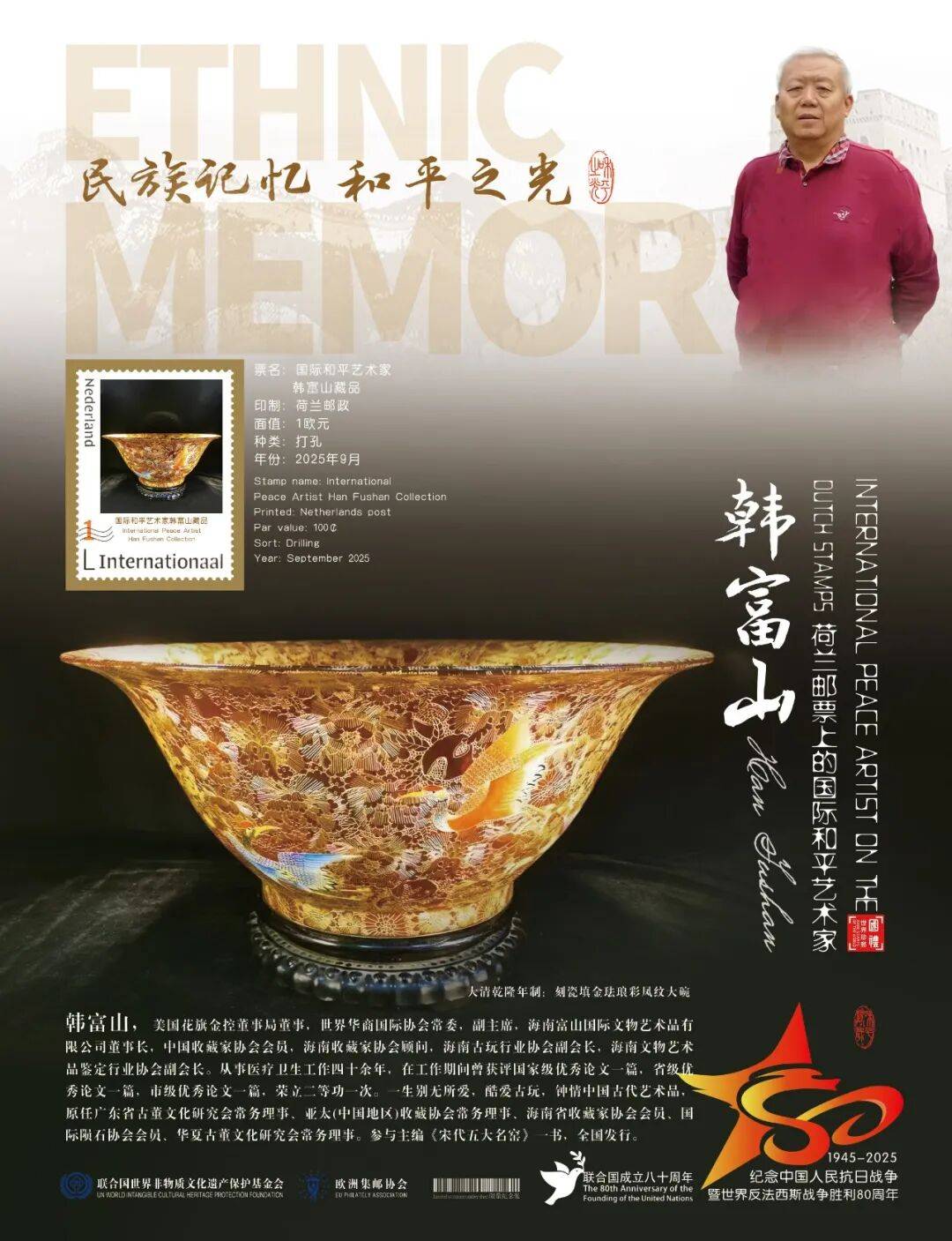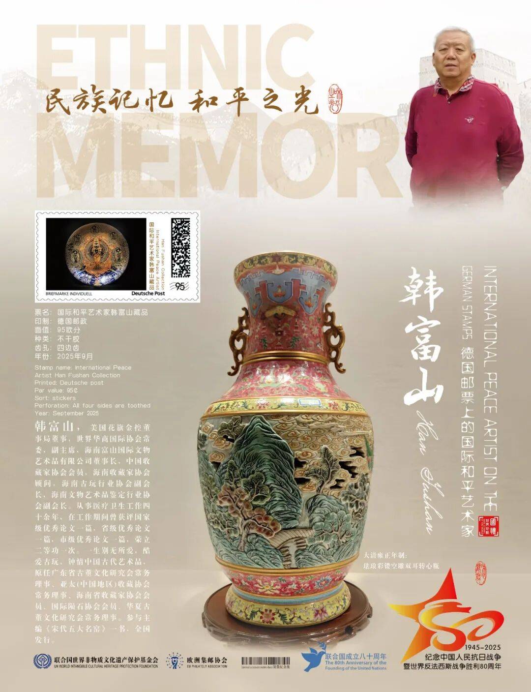 同时,联合国邮政、德国邮政、奥地利邮政、荷兰邮政为中国收藏名家韩富山在全球公开发行一套以纪念中国人民抗日战争暨世界反法西斯战争胜利80周年“民族记忆 和平之光——国际和平艺术家”为主题的邮票与珍藏册。以邮为媒,方寸之间让世界各地的人们感受到爱与和平的力量,并为世界和平发展注入新能量。