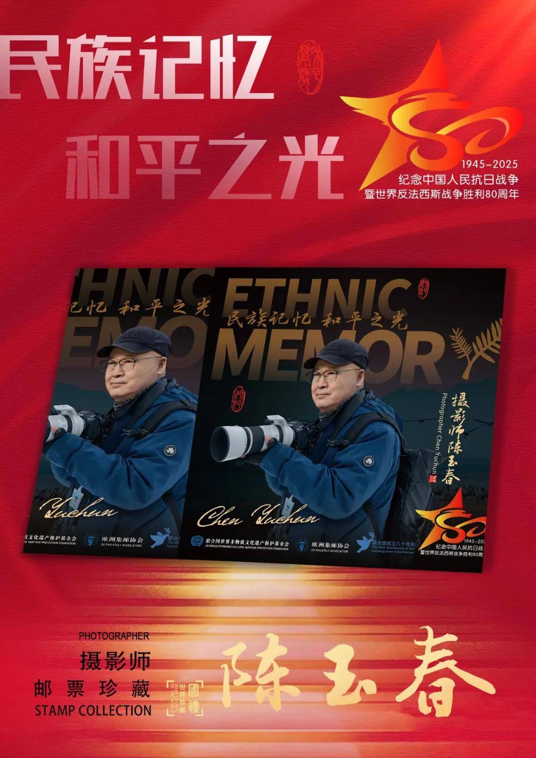 同时,联合国邮政、德国邮政、德国邮政、荷兰邮政为中国摄影师陈玉春在全球公开发行一套以纪念中国人民抗日战争暨世界反法西斯战争胜利80周年“民族记忆 和平之光——摄影师”为主题的邮票与珍藏册。以邮为媒,方寸之间让世界各地的人们感受到爱与和平的力量,并为世界和平发展注入新能量。