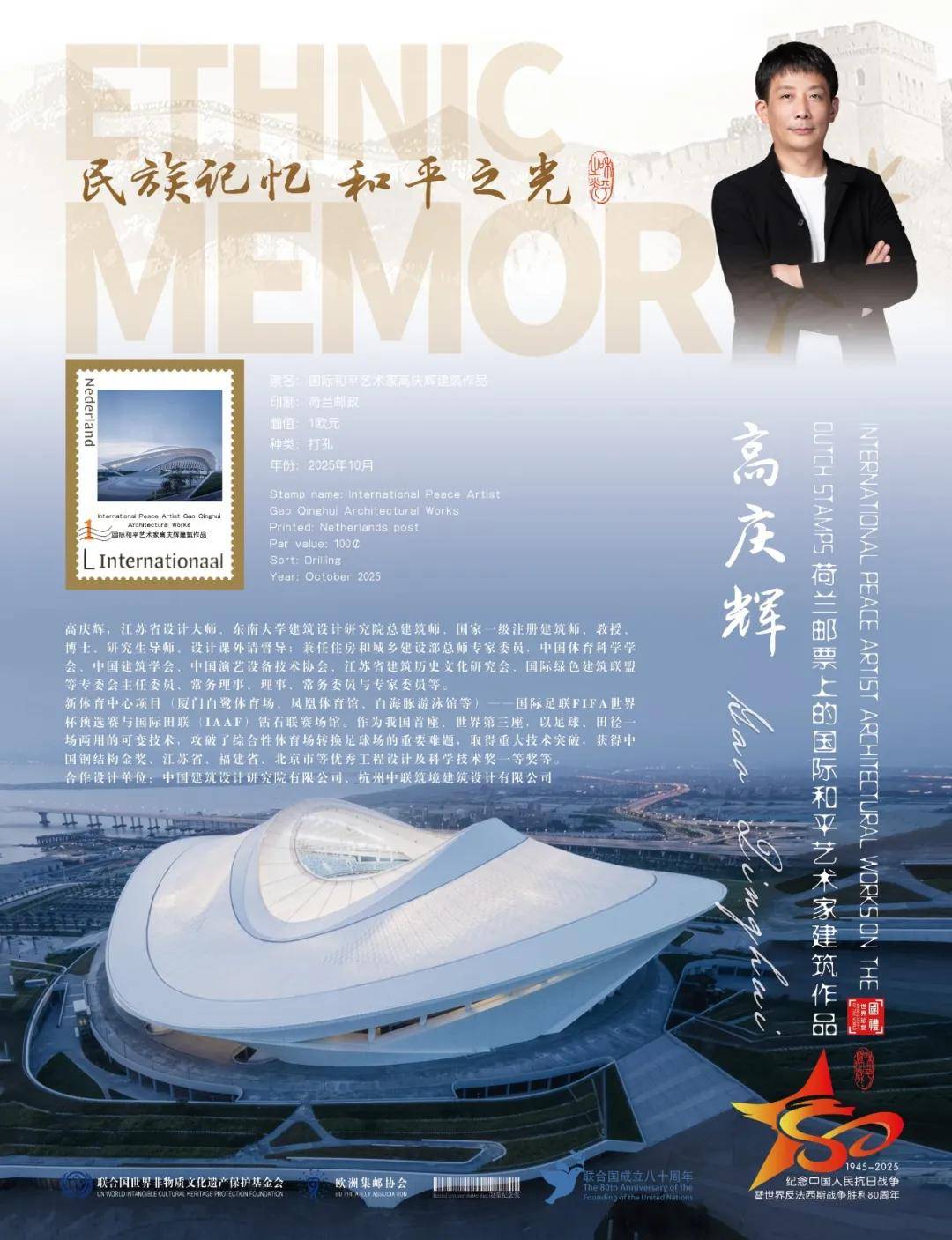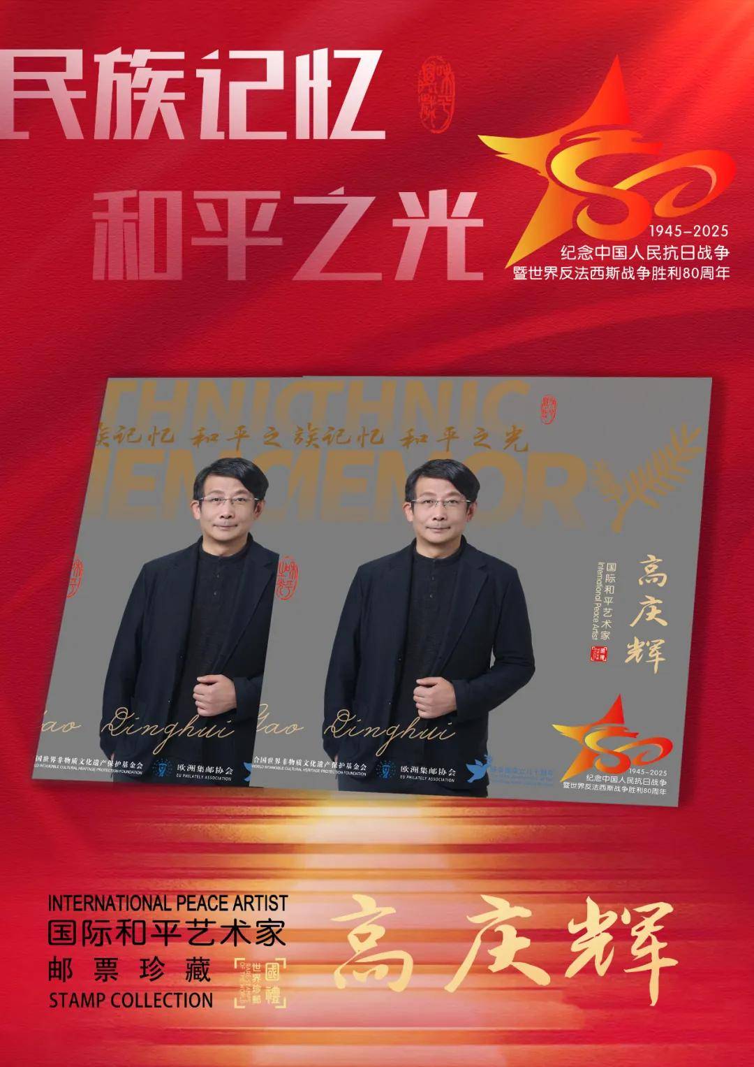 同时,联合国邮政、德国邮政、法国邮政、荷兰邮政为中国设计名家高庆辉在全球公开发行一套以纪念中国人民抗日战争暨世界反法西斯战争胜利80周年“民族记忆 和平之光——国际和平艺术家”为主题的邮票与珍藏册。以邮为媒,方寸之间让世界各地的人们感受到爱与和平的力量,并为世界和平发展注入新能量。