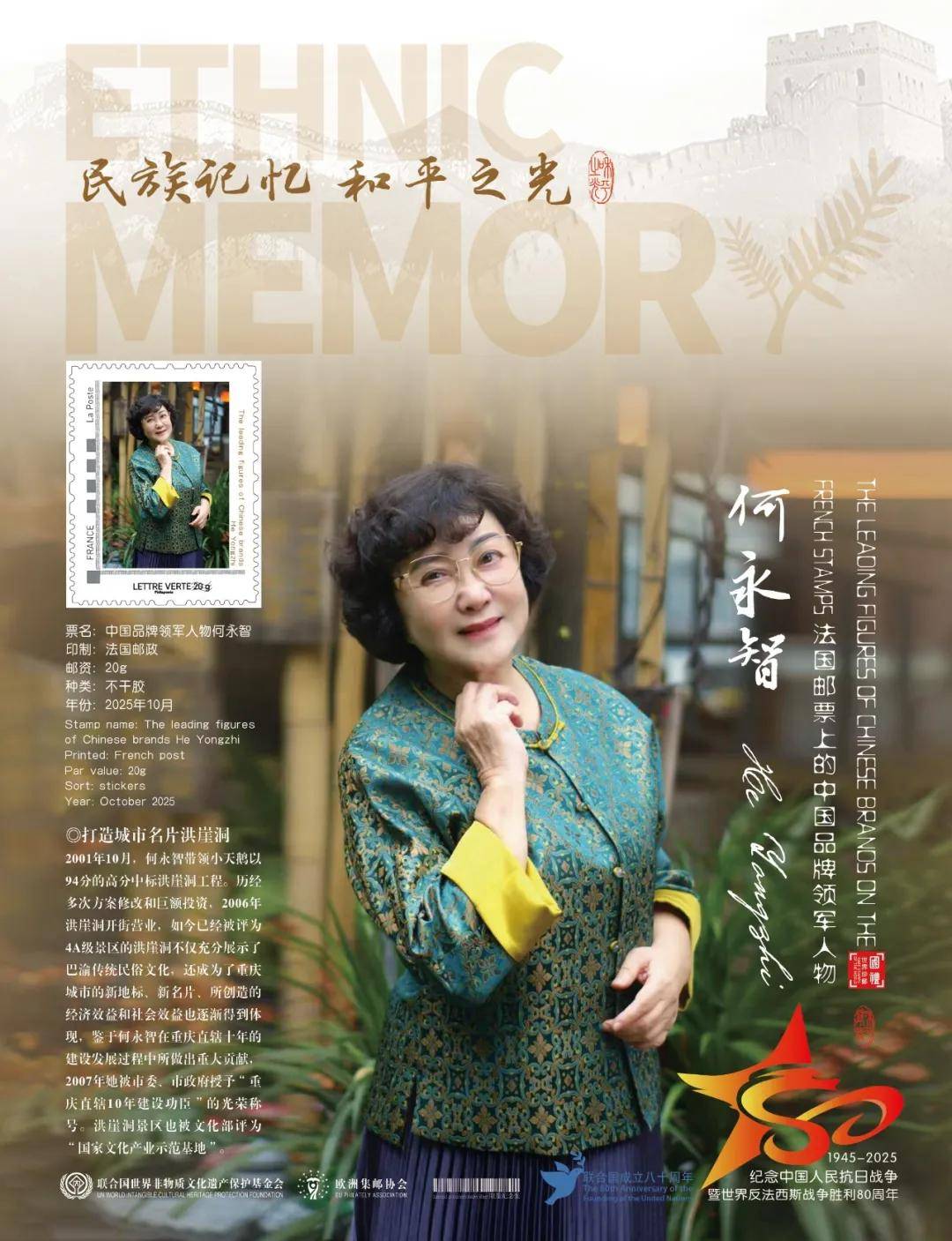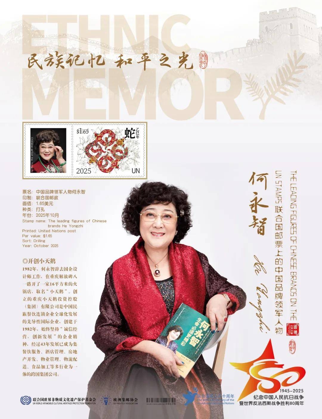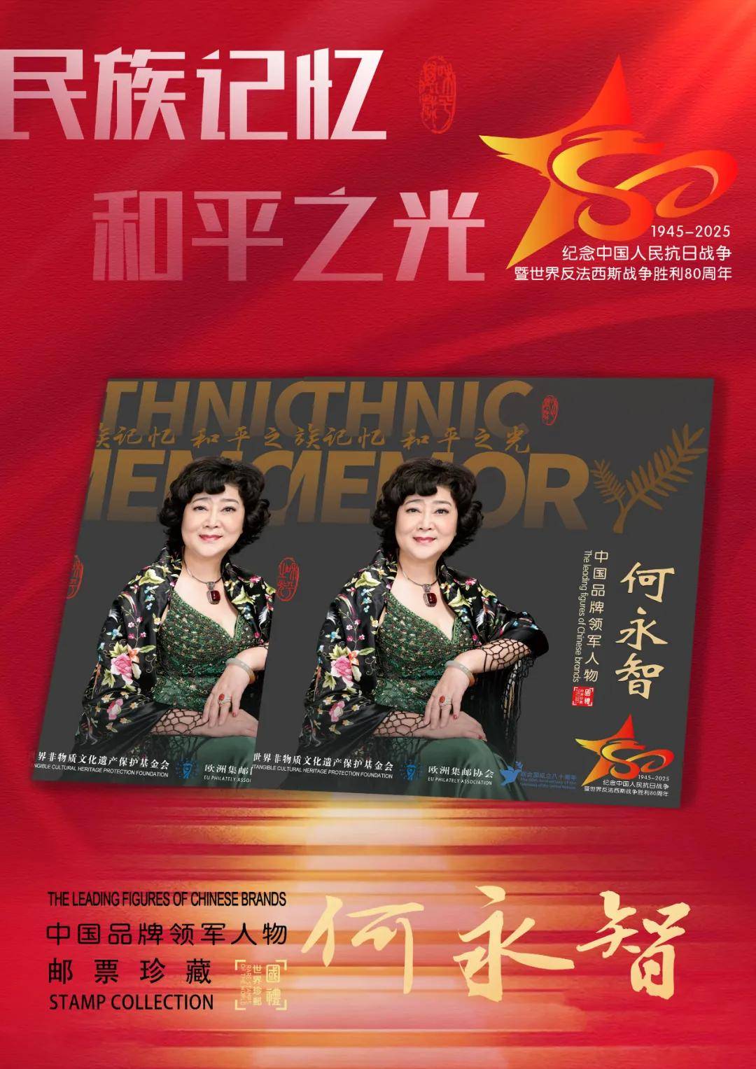 同时,联合国邮政、德国邮政、法国邮政、荷兰邮政为中国品牌领军人物何永智在全球公开发行一套以纪念中国人民抗日战争暨世界反法西斯战争胜利80周年“民族记忆 和平之光——中国品牌领军人物”为主题的邮票与珍藏册。